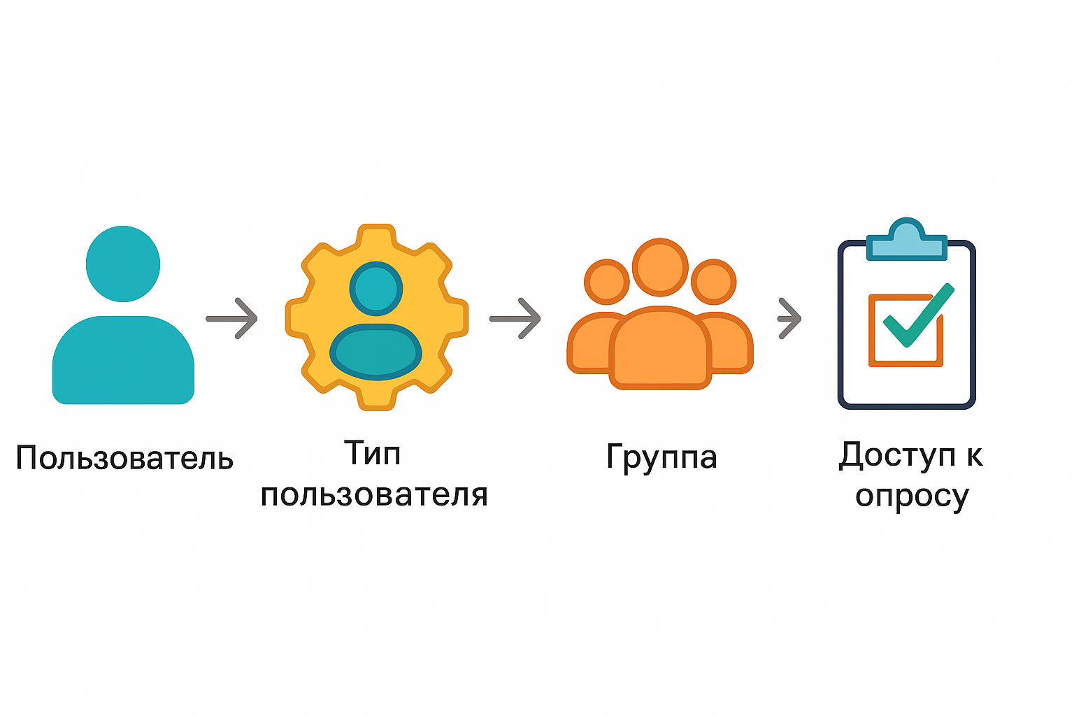 Тип пользователя определяет, что он может делать в системе: создавать опросы, редактировать их, управлять доступом и т. д.