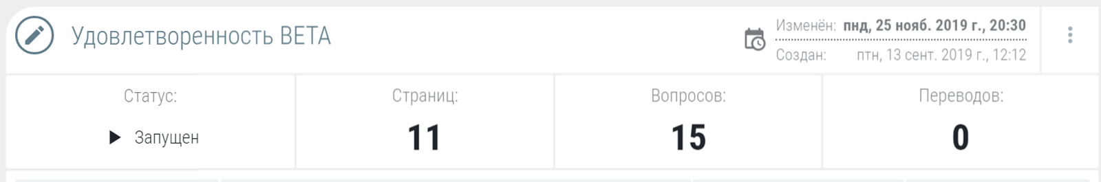 Панель инструментов дает вам обзор ваших проектов анкет и опросов. После выбора определенного опроса в центральной части экрана переключение в необходимый режим работы осуществляется на правой панели.